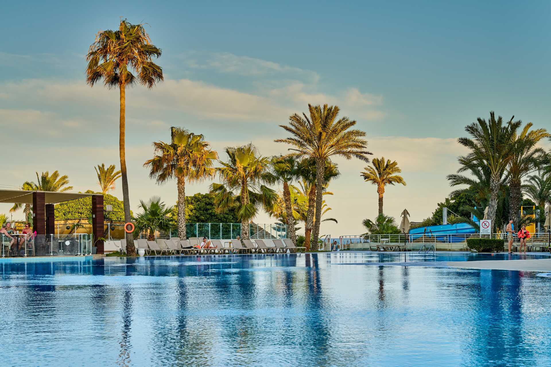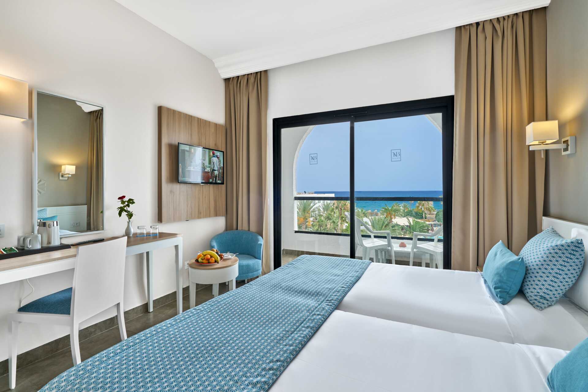 Dubbelrum med balkong, vissa med havsutsikt. En dubbelsäng eller två enkelsängar. Möjlighet till extrabädd i bäddsoffa. Wifi, luftkonditionering och deponering ingår. Minibar. Tv med internationella kanaler. Hårtork. Badrum med dusch och wc. Städning 7 ggr/vecka.
