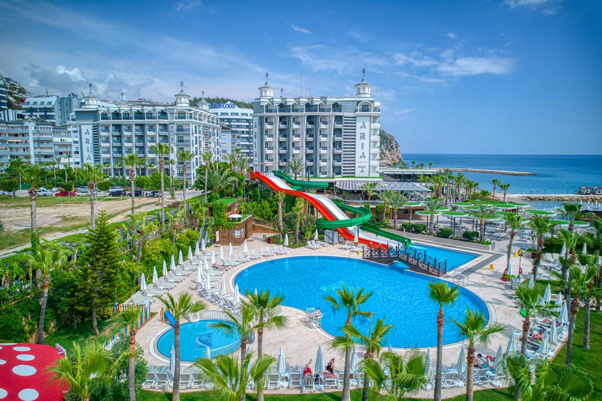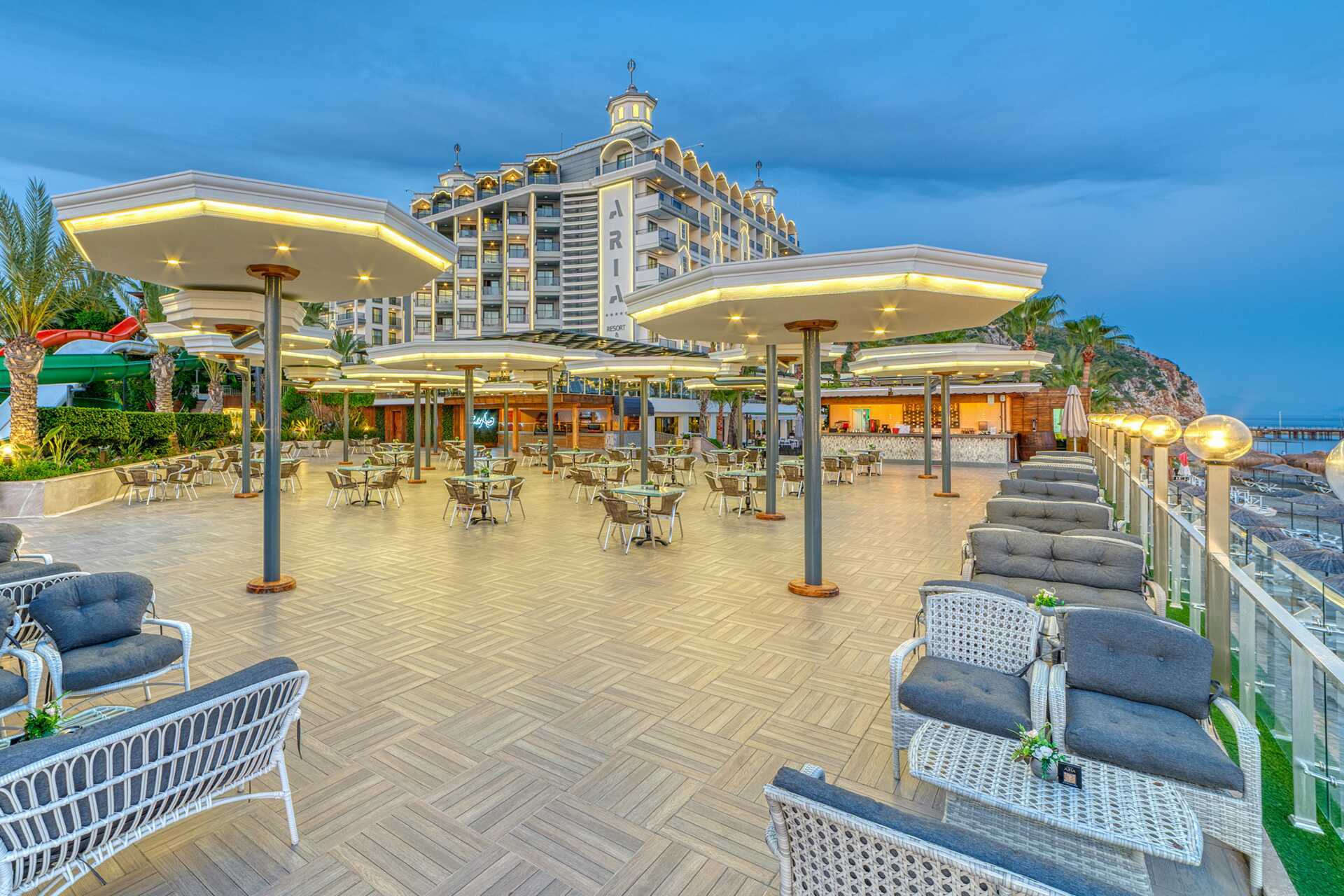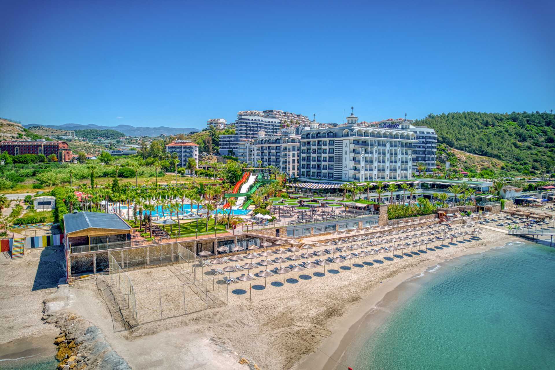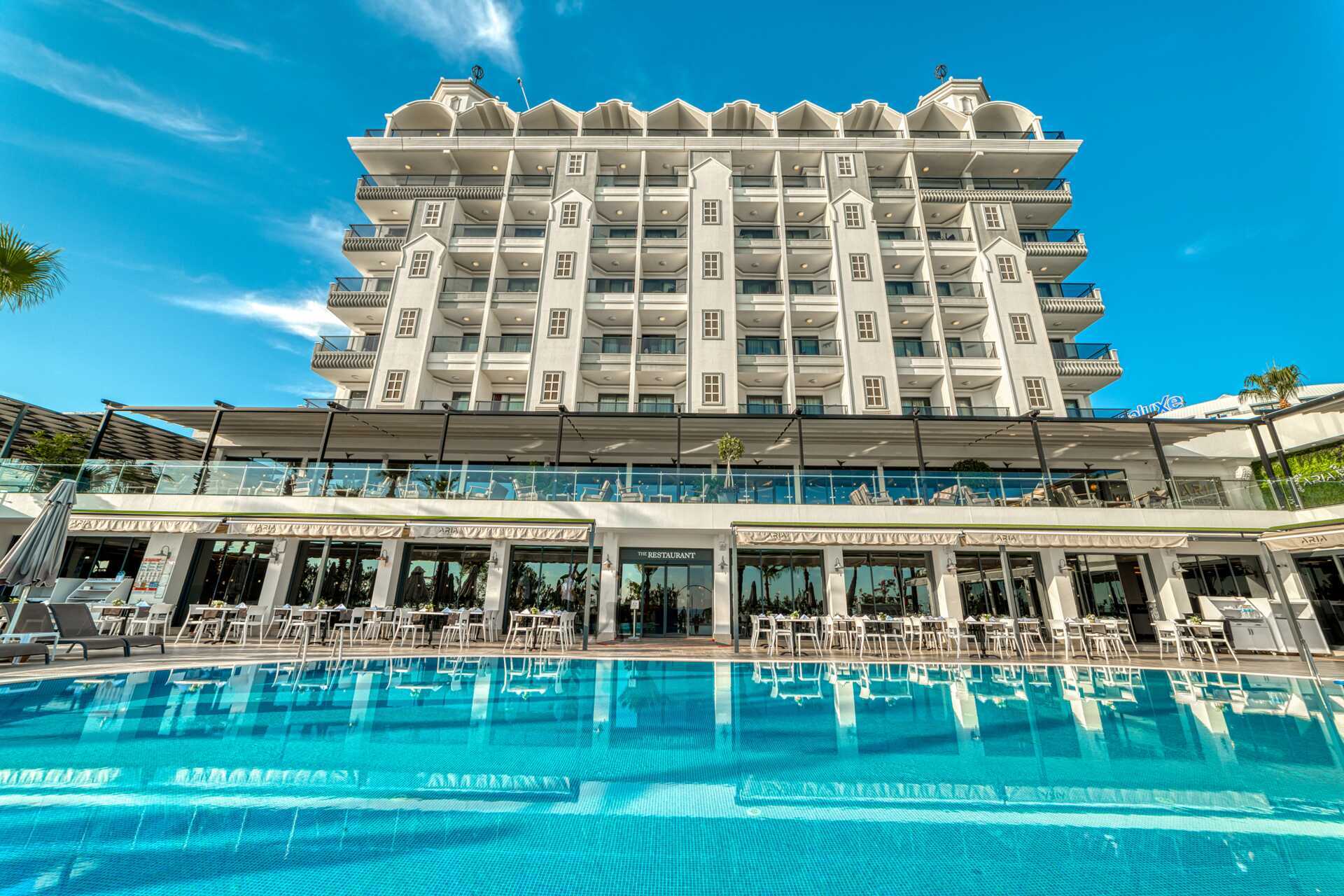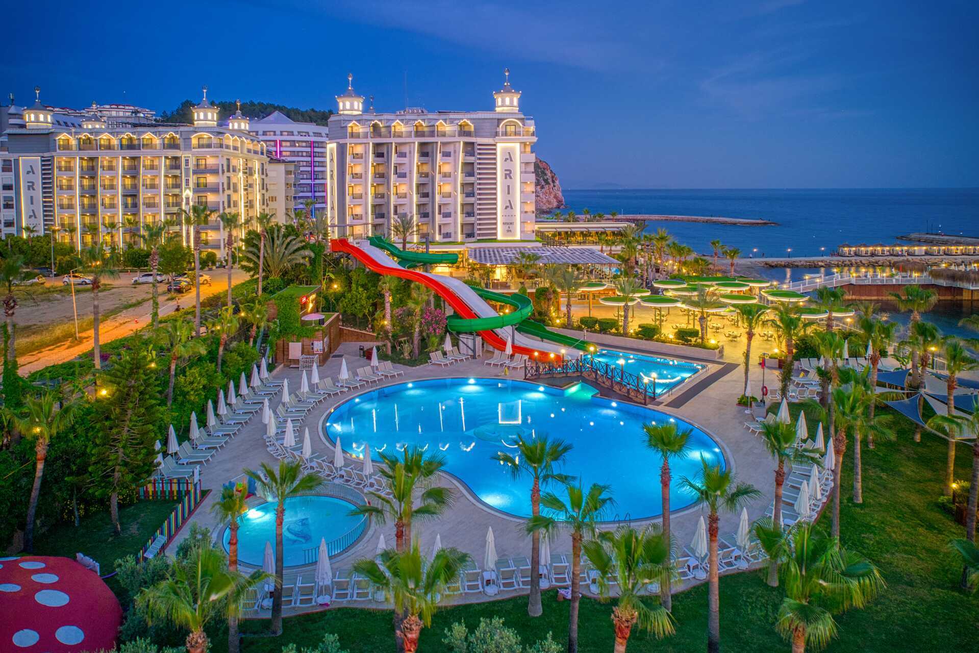 Välkomna till hotell Aria Resort & Spa, beläget i Konakli, ca 12 kilometer från Alanyas centrum. Hotellet består av två byggnader, block A med 8 våningar och block B med 7 våningar, som förbinds via en tunnel under vägen.
