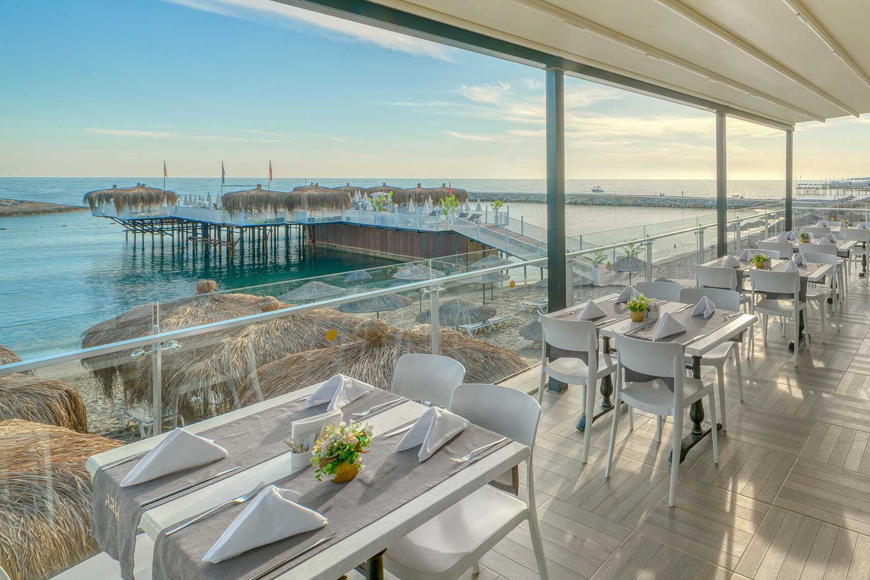 All Inclusive ingår i priset och serveras i rikligs bufféer till frukost, lunch och middag. Två à la carte-restauranger som bjuder på lokala smaker och smaker från köken kring Medelhavet. Flera snackbarer och barer för lättare förtäring och uppfriskande drycker.
