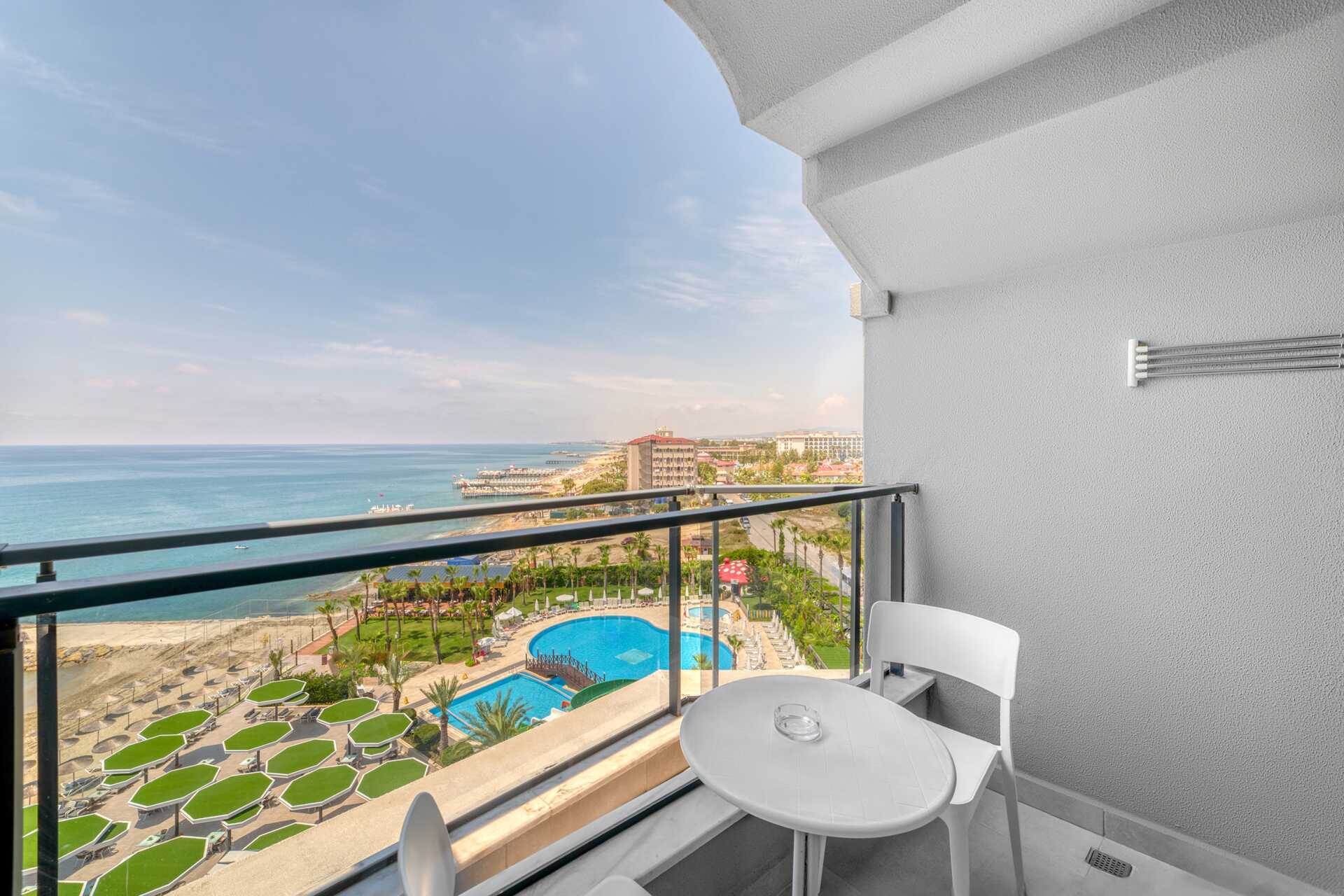 Deluxerum med balkong och havsutsikt. En dubbelsäng och en enkelsäng. Wifi, luftkonditionering och deponering ingår. Minibar. Vattenkokare samt kaffe och te. Tv med internationella kanaler. Tofflor. Hårtork. Badrum med dusch och wc.