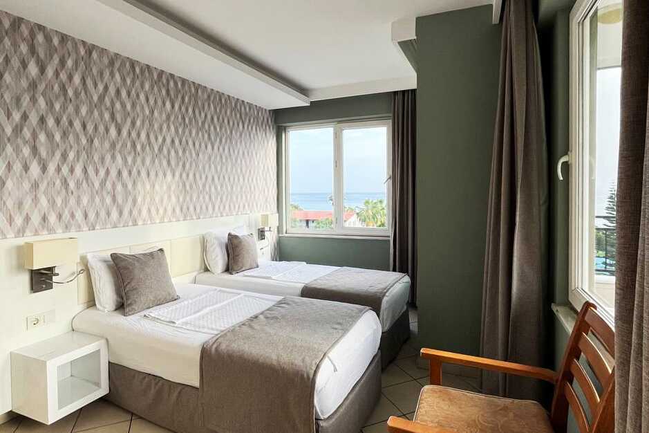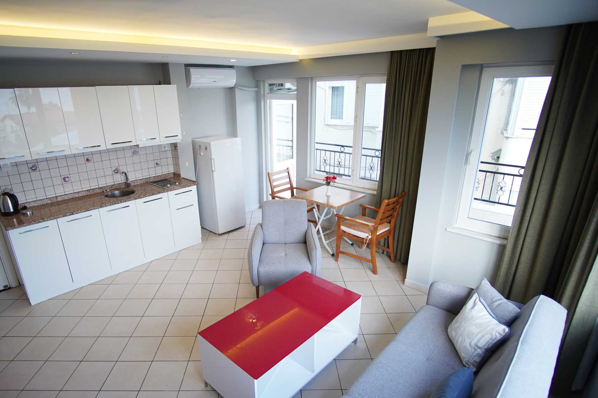 Tvårumslägenhet med balkong. Sovrum och ett kombinerat vardagsrum med minikök. Två enkelsängar. Möjlighet till extrabädd i bäddsoffa. Minikök med kokplattor, kylskåp, mikrovågsugn, vattenkokare och enkel köksutrustning. Wifi ingår. Luftkonditionering mot avgift. Tv med internationella kanaler. Hårtork. Badrum med dusch och wc. Städning 7 ggr/vecka.