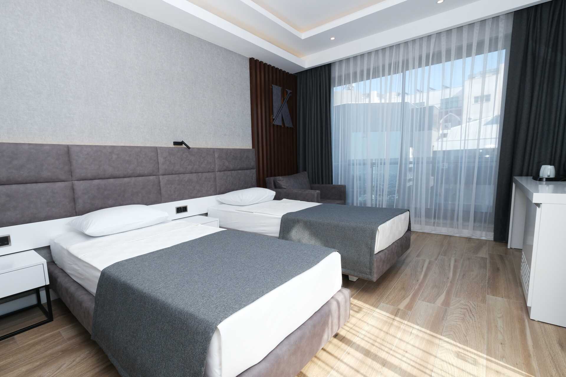 Dubbelrum med balkong. En dubbelsäng eller två enkelsängar. Möjlighet till extrabädd i bäddsoffa eller i enkelsäng. Wifi och luftkonditionering ingår. Deponering mot avgift. Minibar. Vattenkokare samt kaffe och te. Tv med internationella kanaler. Hårtork. Badrum med dusch och wc. Städning 7 ggr/vecka. Barn under två år räknas in i maxantalet personer i rummet.