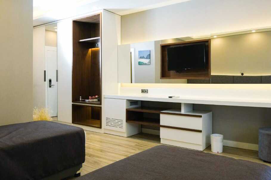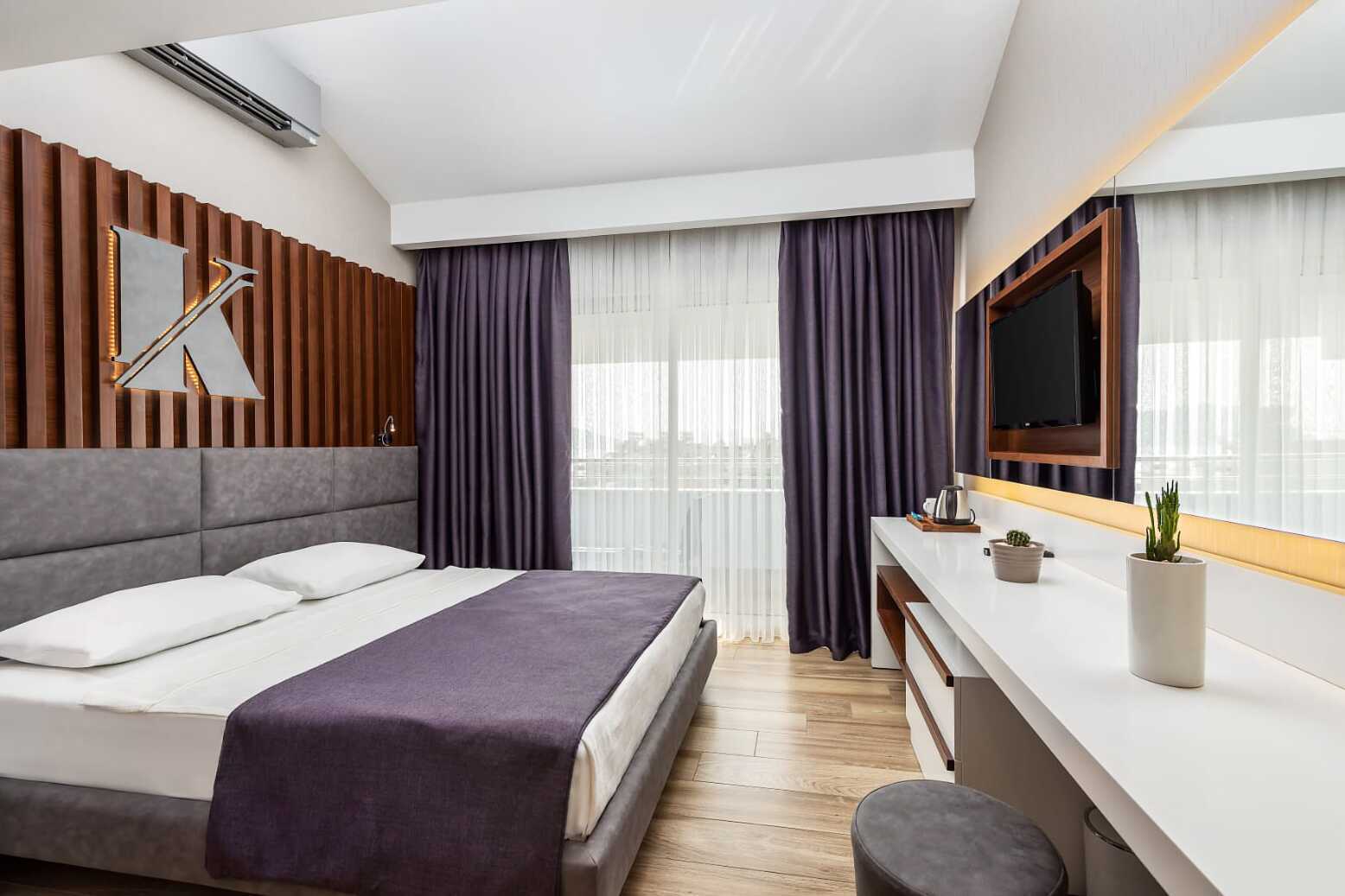 Deluxerum med balkong. Åldersgränsen för att bo i den är rumstypen är 12 år. En dubbelsäng eller två enkelsängar. Möjlighet till extrabädd i bäddbar fåtölj. Wifi och luftkonditionering ingår. Deponering mot avgift. Minibar. Vattenkokare samt kaffe och te. Tv med internationella kanaler. Hårtork. Badrum med dusch och wc. Städning 7 ggr/vecka. Barn under två år räknas in i maxantalet personer i rummet.