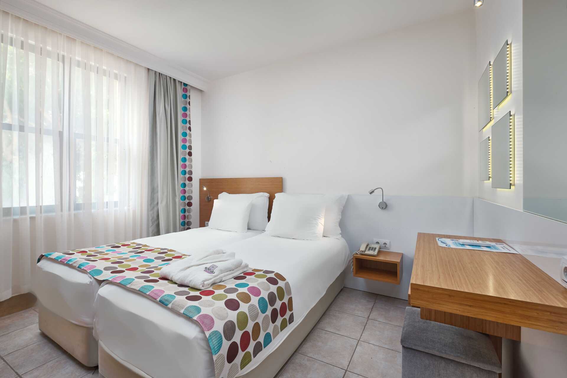 Dubbelrum med balkong. Två enkelsängar. Wifi och luftkonditionering ingår. Deponering mot avgift. Tv med lokala kanaler. Hårtork. Badrum med dusch och wc. Städning 7 ggr/vecka.