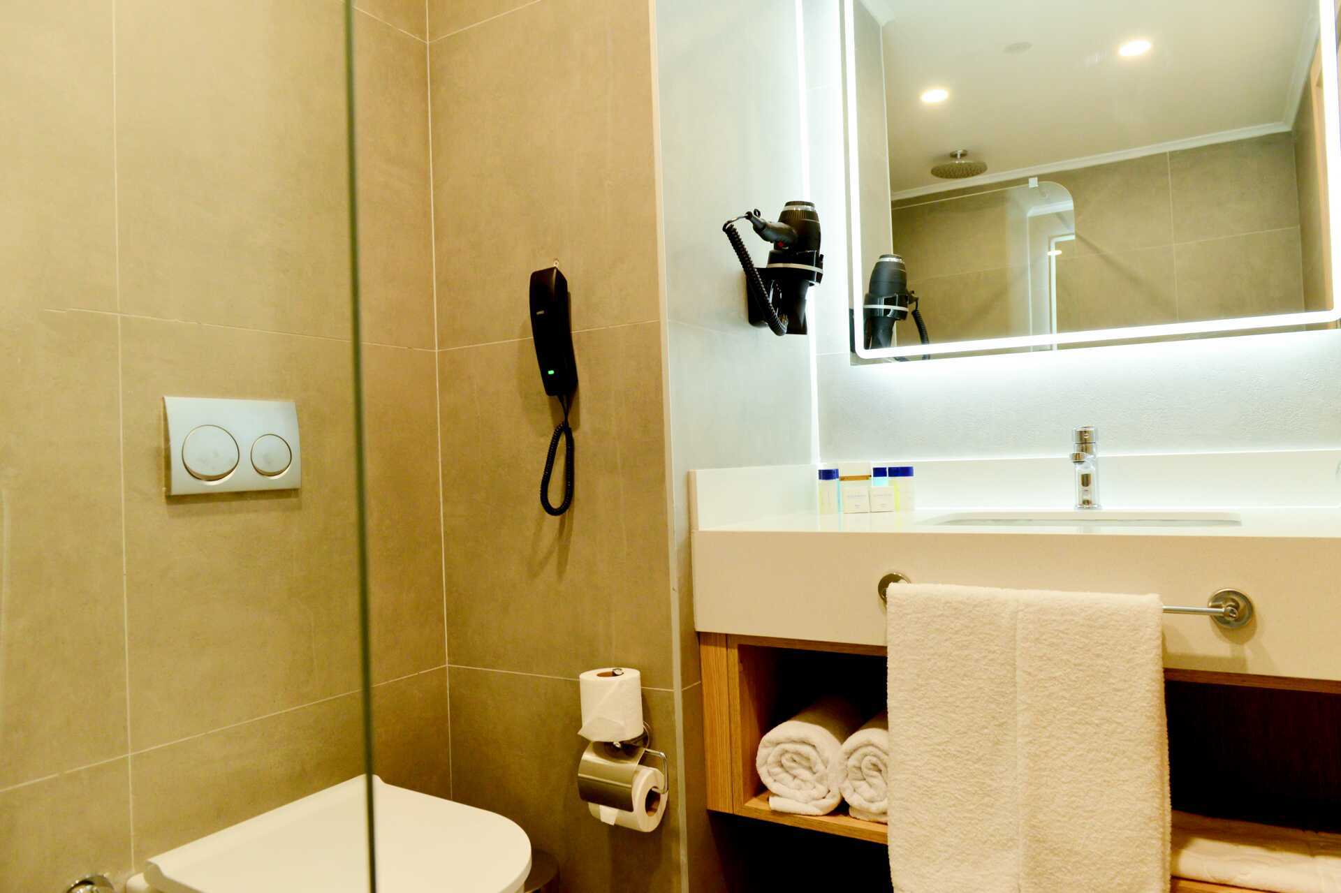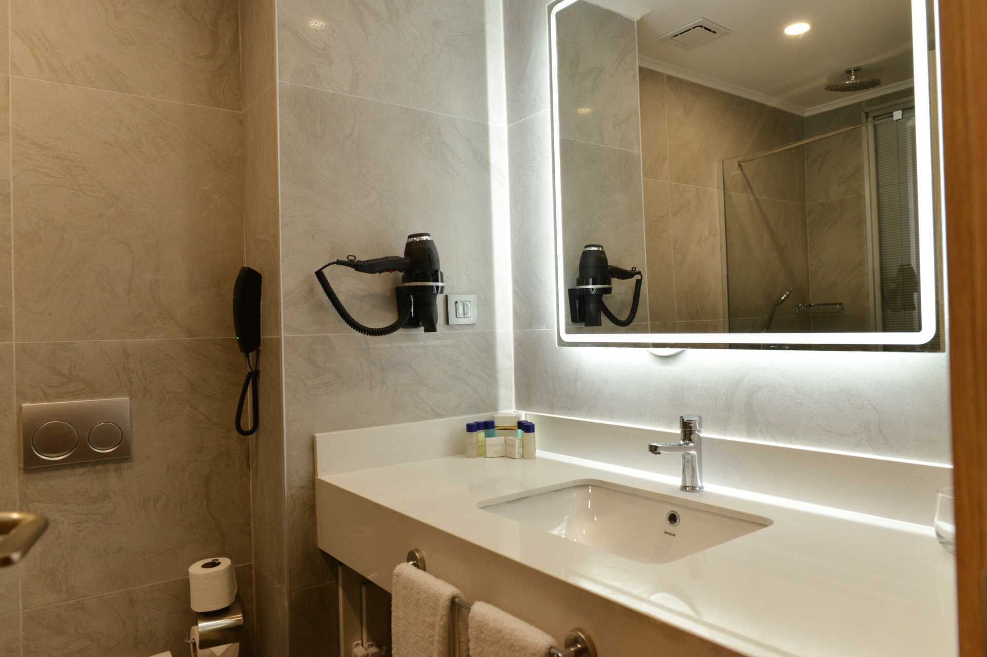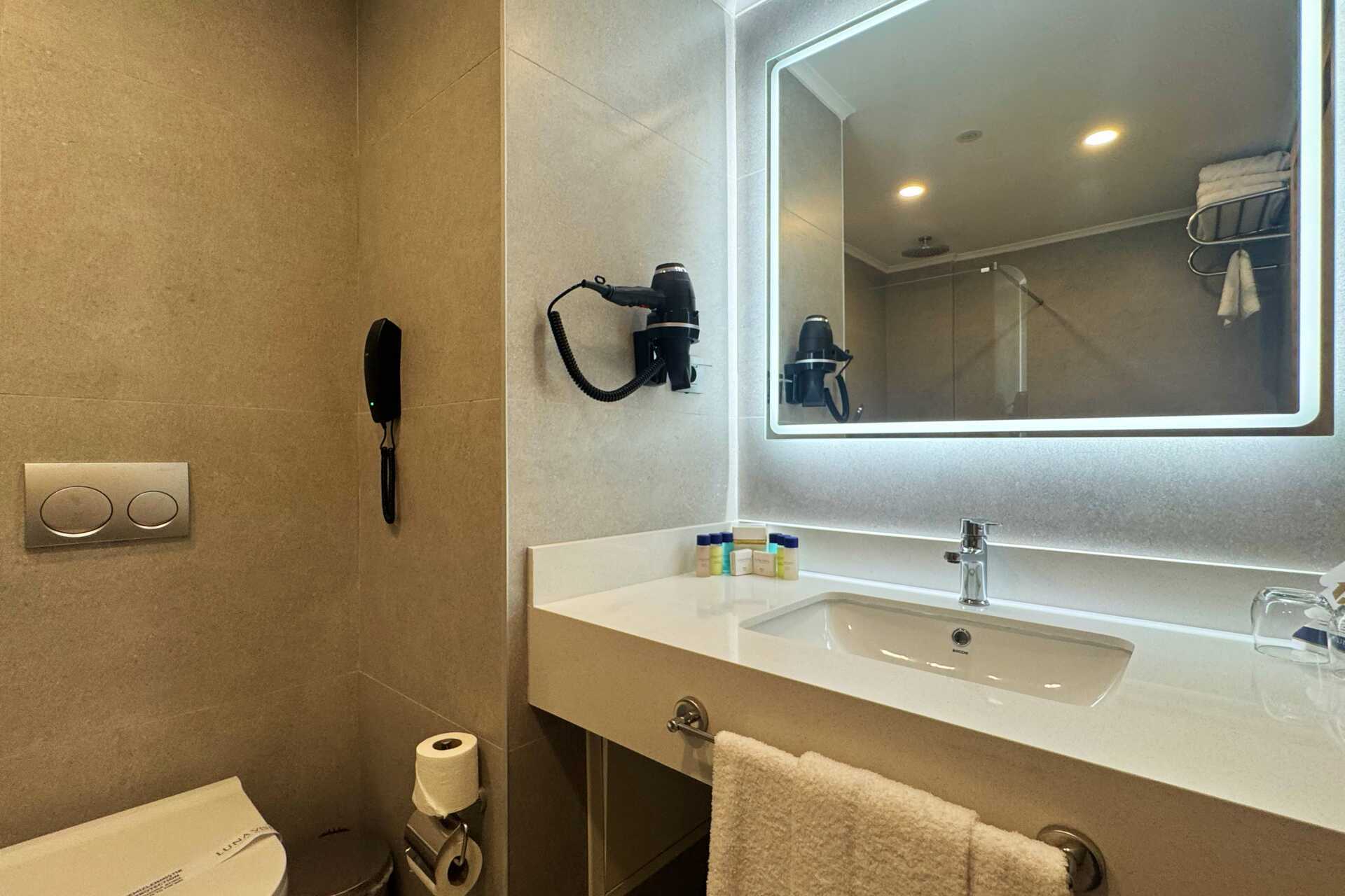 Dubbelrum med balkong. En dubbelsäng eller två enkelsängar. Möjlighet till extrabädd i bäddbar fåtölj. Wifi, luftkonditionering och deponering ingår. Minibar (fylls dagligen). Vattenkokare samt kaffe och te. Tv med internationella kanaler. Badrockar och tofflor. Hårtork. Badrum med dusch och wc. Städning 7 ggr/vecka. Barn under två år räknas in i max antal personer i rummet.