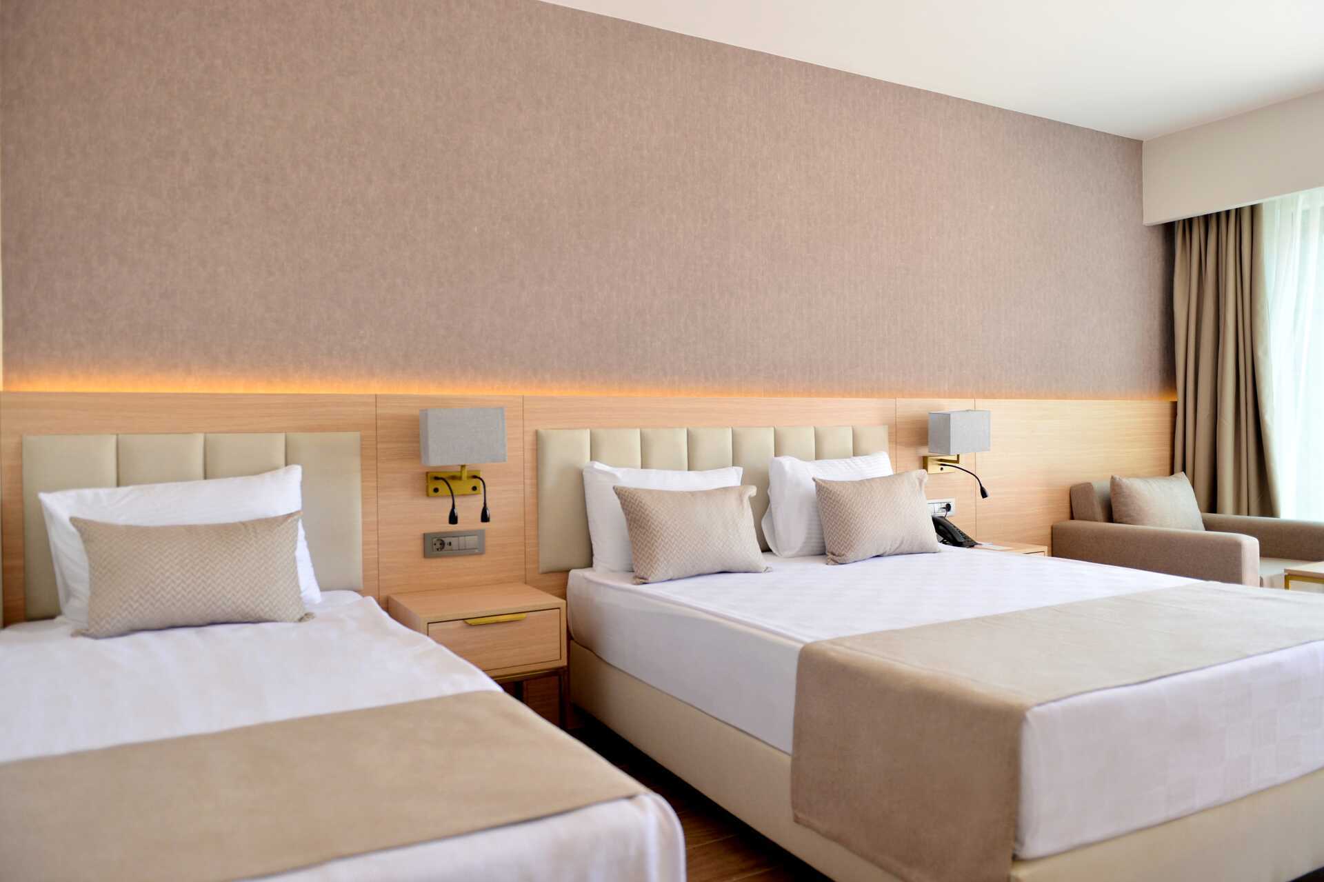 Superiorrum med balkong. En dubbelsäng eller två enkelsängar. Möjlighet till extrabädd i enkelsäng. Wifi, luftkonditionering och deponering ingår. Minibar (fylls dagligen). Kapselmaskin för kaffe. Vattenkokare samt kaffe och te. Tv med internationella kanaler. Badrockar och tofflor. Hårtork. Badrum med dusch och wc. Städning 7 ggr/vecka. Barn under två år räknas in i max antal personer i rummet.