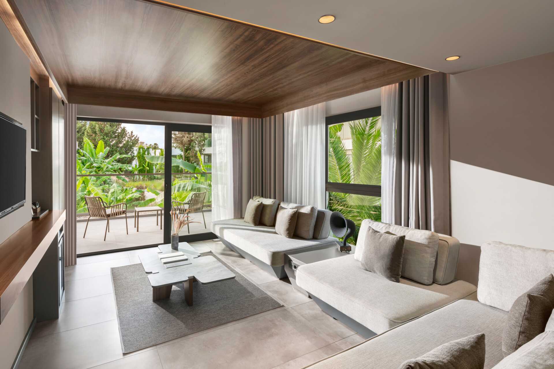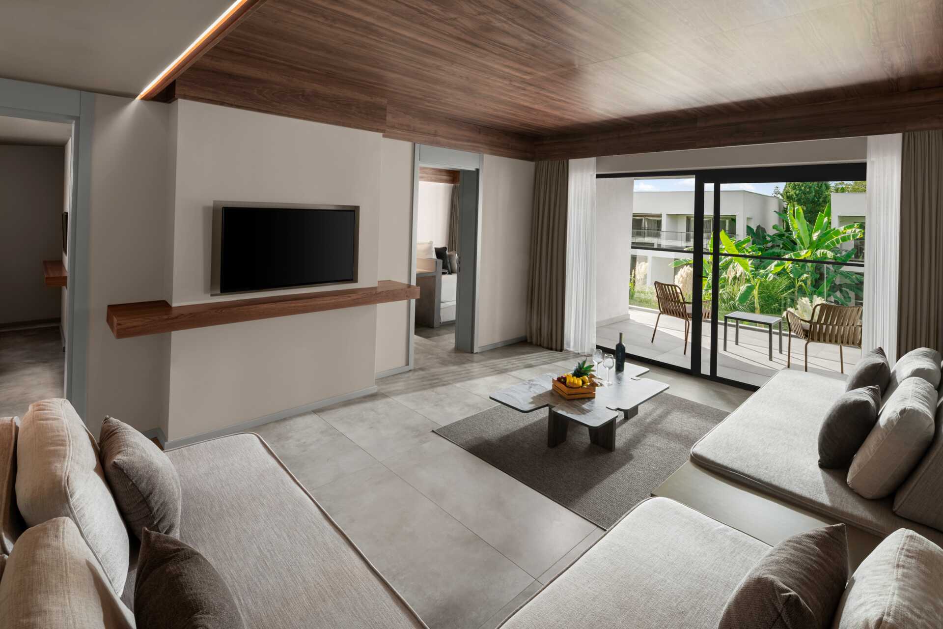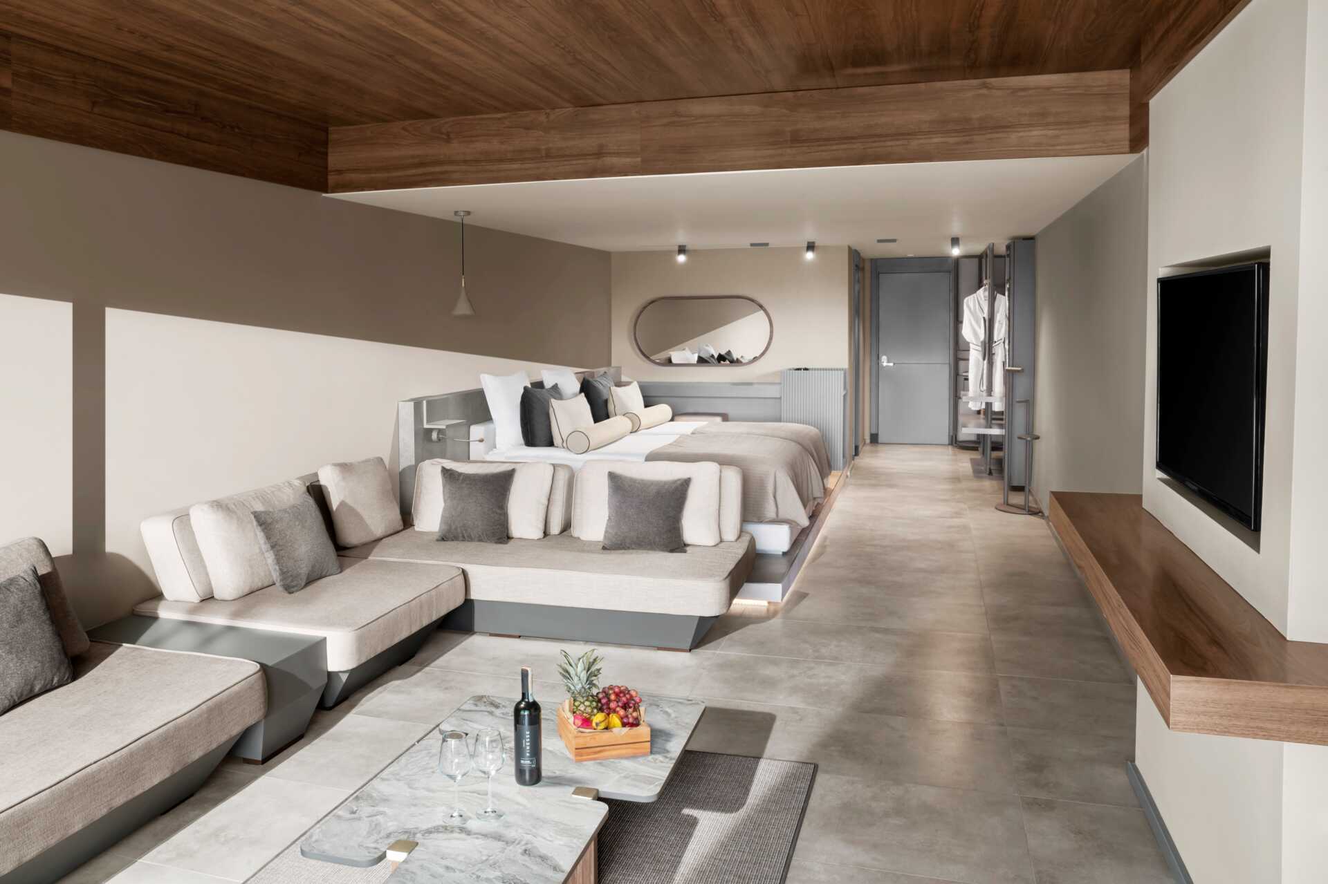 Familjesvit med balkong eller markterrass, vissa med begränsad havsutsikt. Familjesviterna består av ett sovrum och ett vardagsrum. En dubbelsäng eller två enkelsängar. Möjlighet till extrabäddar i bäddsoffa. Wifi, luftkonditionering och deponering ingår. Minibar mot avgift. Vattenkokare samt kaffe och te. Tv med internationalla kanaler. Hårtork. Badrum med badkar och wc. Städning 7 ggr/vecka.