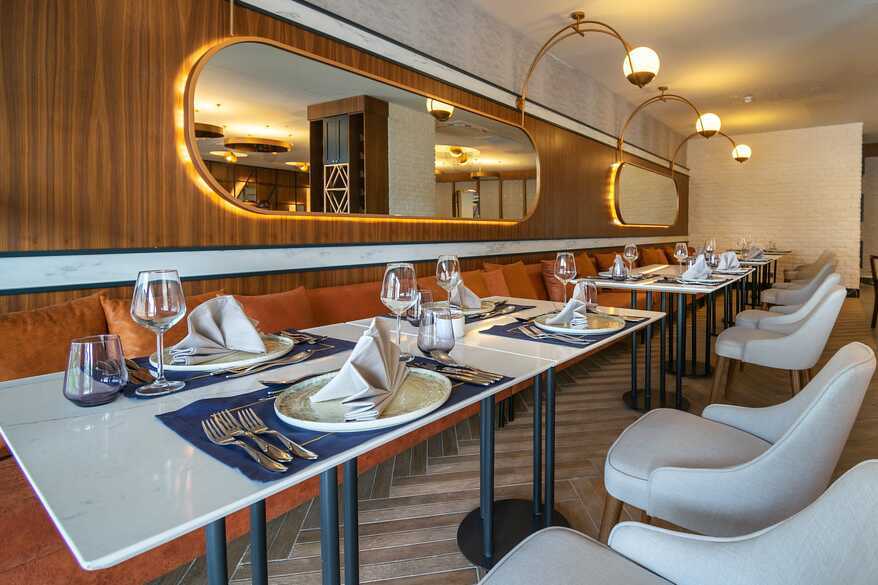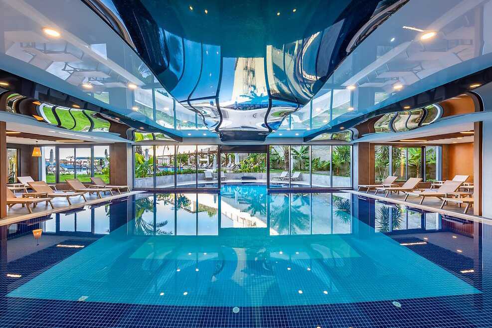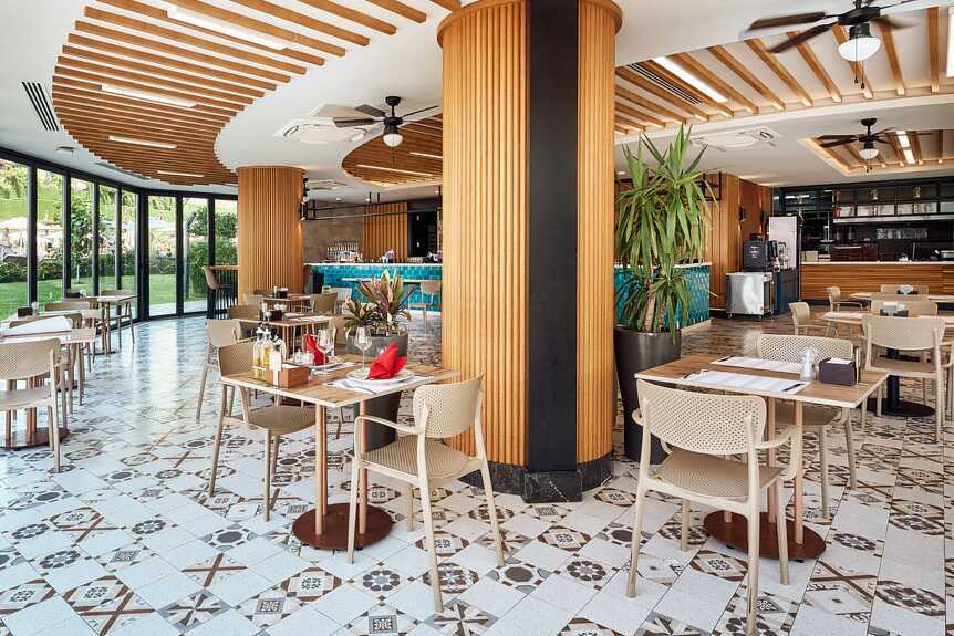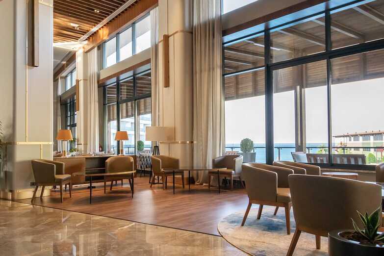 Dubbelrum med balkong, vissa med begränsad havsutsikt, havsutsikt och/eller poolutsikt. En dubbelsäng eller två enkelsängar. Möjlighet till extrabädd i en dagbädd. Wifi, luftkonditionering och deponering ingår. Minibar. Vattenkokare samt kaffe och te. Tv med internationella kanaler. Badrockar och tofflor. Hårtork. Badrum med dusch och wc. Städning 7 ggr/vecka.