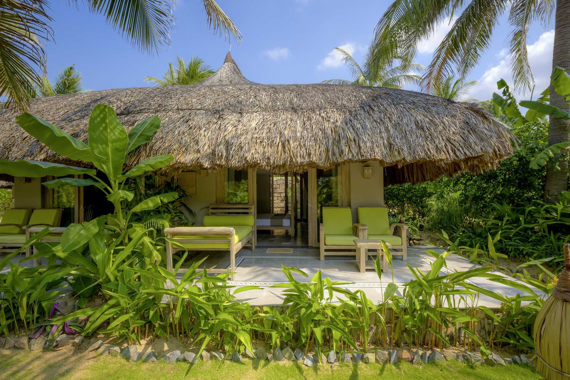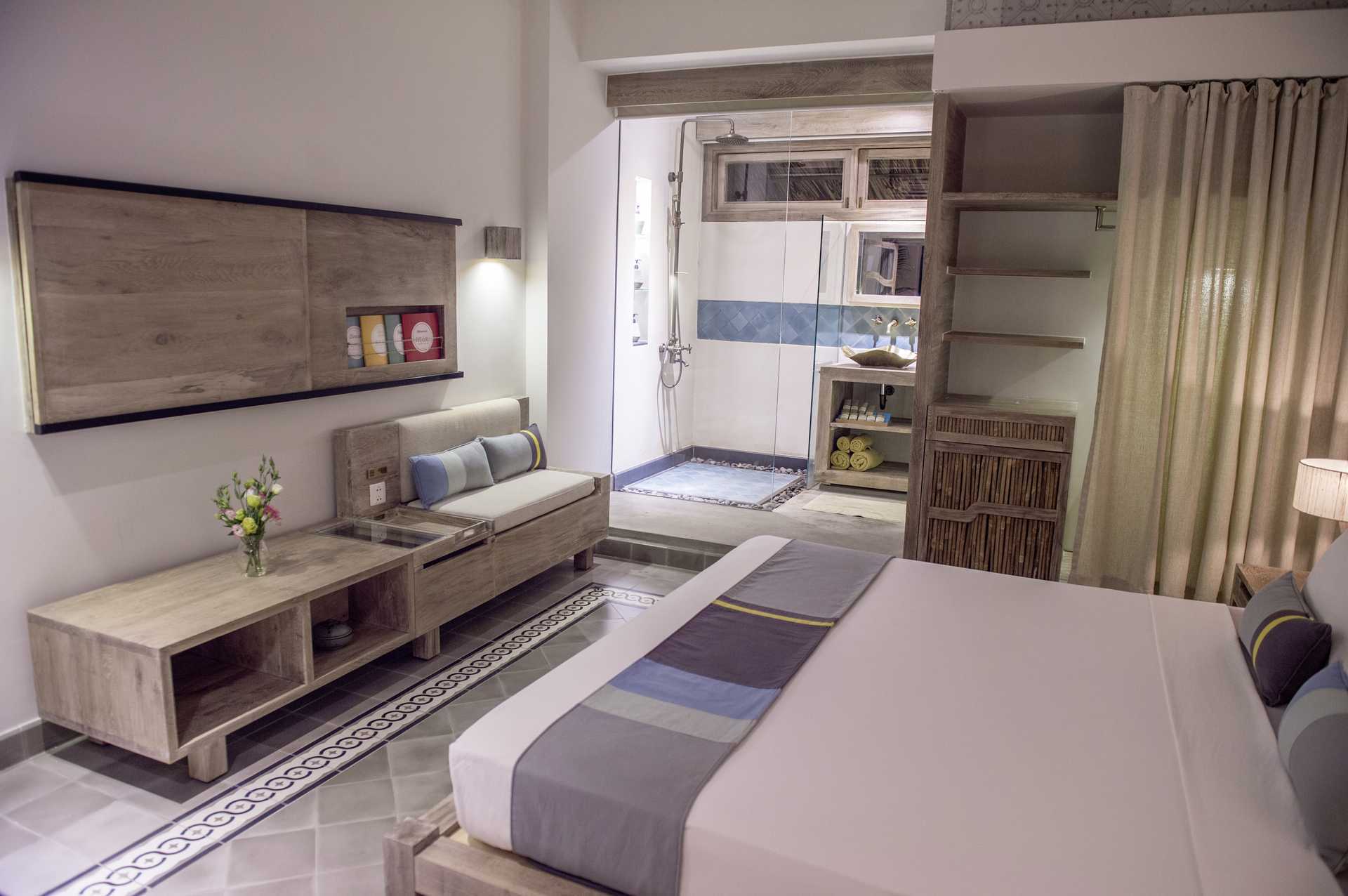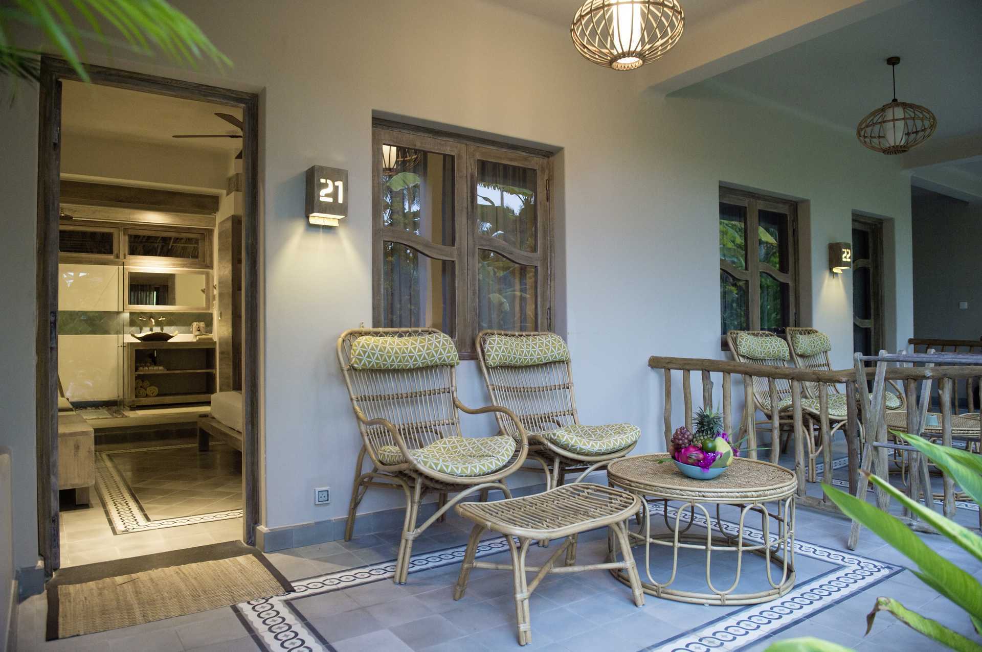 Deluxerum i bungalower med markterrass. På terrassen finns en dagbädd, fåtöljer samt bord. Dubbelsäng eller två enkelsängar. Möjlighet till extrabädd i hopfällbar säng. Wifi, luftkonditionering och deponering ingår. Takfläkt. Minibar - två små flaskor med vatten ingår per dag. Vattenkokare samt kaffe och te. Tv med internationella kanaler. Badrockar. Hårtork. Badrum med två duschar, badkar samt wc. Badrummet är delvis utomhus. Städning 7 ggr/vecka. Barn under två år räknas in i maxantalet personer i rummet.